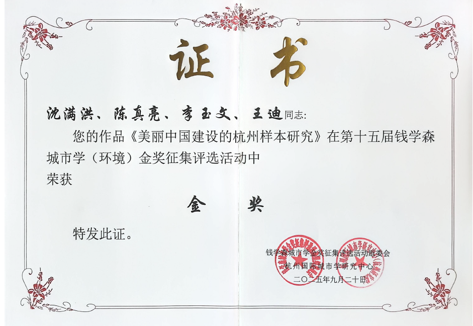 9月21日上午,中國城市學年會·2025”暨“天元教育論壇·2025”在杭州舉行開幕式,頒發了第十五屆錢學森城市學金獎。由浙江農林大學生態文明研究院院長沈滿洪教授及團隊成...